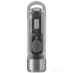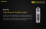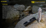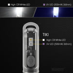 The Nitecore TIKI is the latest addition to Nitecore's line of keychain lights. The TIKI has a transparent body constructed of durable PC materials packed into a small design that is compact but still allows for a comfortable and steady grip. Thanks to an OSRAM P8 LED serving as the main light, the TIKI can emit 300 lumens with a uniform and soft beam with the help of a total reflective optic lens. In addition to the main LED, the TIKI has two additional sidelights, one High CRI White LED great for providing true color rendering for reading and one UV LED great for charging up glow-in-the-dark objects or identifying counterfeits. These features are easily accessible through the single button interface which can also provide direct access to the highest output. Once your keychain light is out of juice, quickly recharge via the micro-USB port and be on your way again.